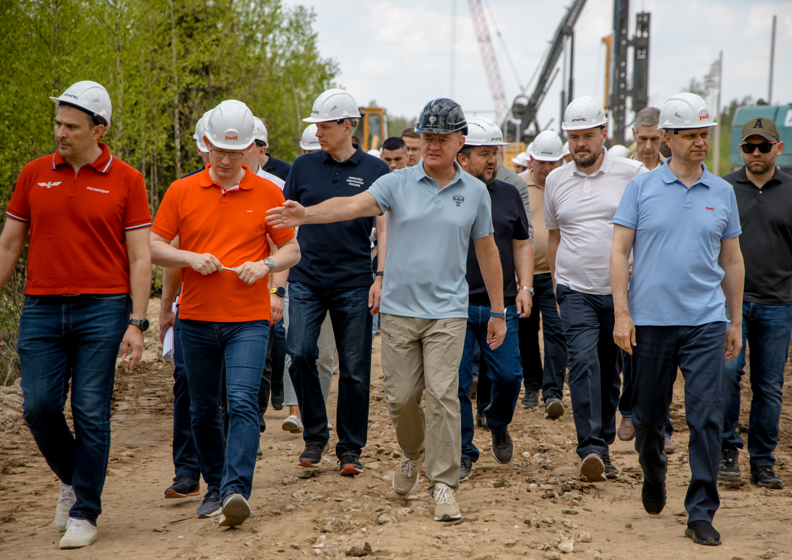 Александр Сахаров доложил о ходе работ по оформлению земельных участков, необходимых для строительства. На площадке в настоящее время переустраивают инженерные коммуникации и прокладывают патрульно-эксплуатационные дороги. Работы проводятся в соответствии с установленным графиком. В них задействовано больше 1000 человек и 250 единиц техники. Группировка сил будет планомерно увеличиваться с началом строительно-монтажных работ.