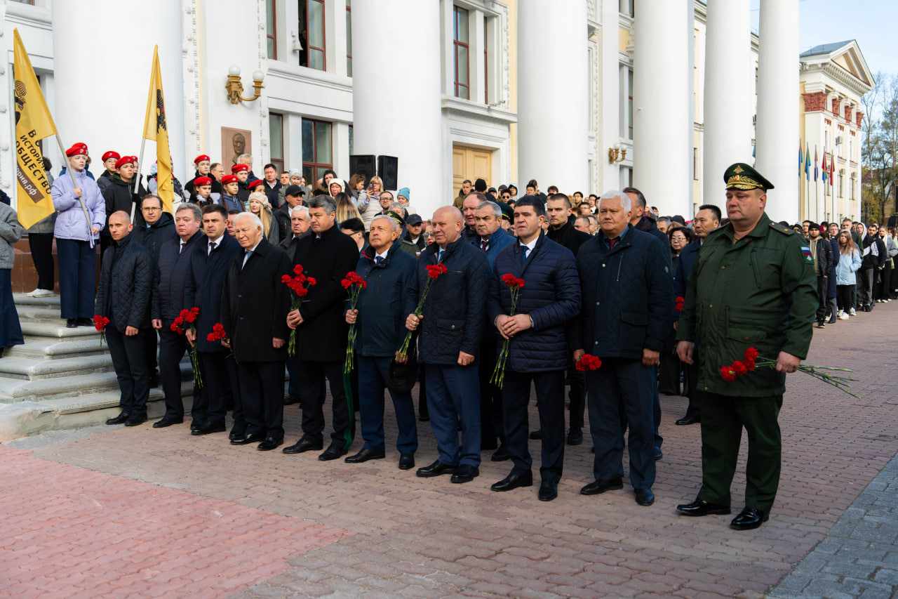 Право зажечь памятный огонь было предоставлено Елене Одаевой, матери лейтенанта Александра Одаева, выпускника Военного учебного центра. Офицер погиб при исполнении воинского долга в зоне Специальной военной операции и был награждён орденом Мужества.