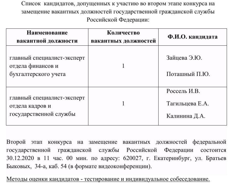 Информация о втором этапе конкурса на вакантные должности федеральной государственной гражданской службы Российской Федерации в Уральском территориальном управлении Федерального агентства железнодорожного транспорта