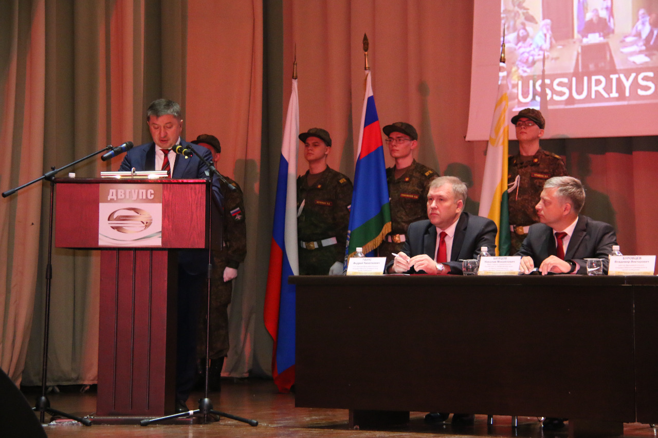 В завершение своего выступления и.о. заместителя руководителя Росжелдора поблагодарил за проделанную работу бывшего ректора ДВГУПС Юрия Давыдова и и.о. ректора ДВГУПС в течение последних 6 месяцев Андрея Гануса.